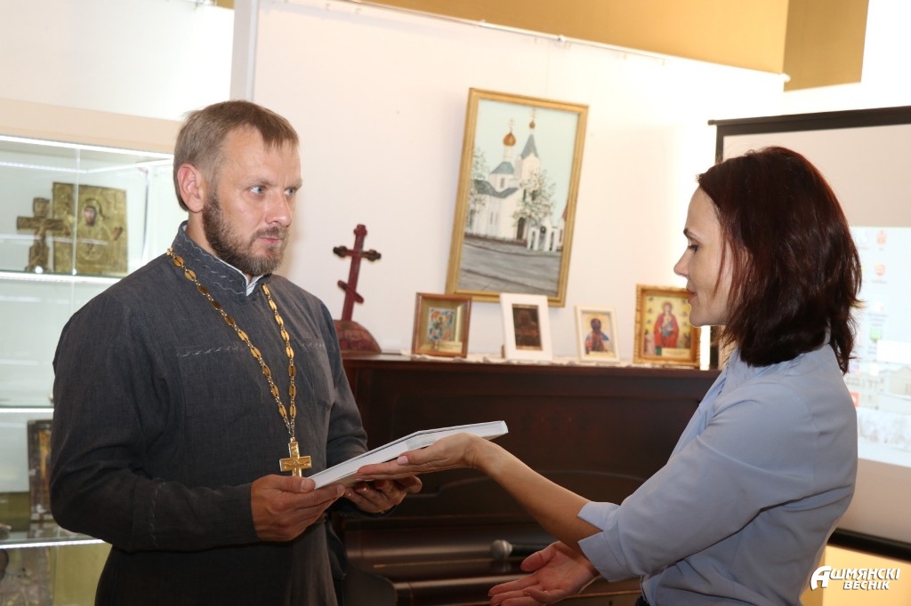 Директор музея Анастасия Новицкая подарила отцу Георгию книгу Владимира Лиходедова «Ашмяны і ваколіцы». Музыкальный подарок посетителям выставки преподнесла преподаватель Ошмянской детской школы искусств Екатерина Мандрик.
