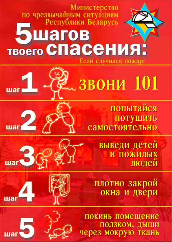 Если вдруг что-то загорелось в квартире (телевизор, утюг, электрообогреватель, холодильник), а ты не имеешь представления, как это быстро потушить – не рискуй своей жизнью и жизнью соседей. Самое главное в этом случае – как можно быстрее вызвать из безопасного места спасателей по телефону 101 или 112. Помни, что от твоих первых действий зависит, насколько быстро будут распространяться дым и огонь по подъезду. Плотно закрыв за собой все двери, ты можешь задержать распространение огня из горящей комнаты на 10 — 15 минут. Этого времени достаточно, чтобы смогли покинуть дом твои родные и соседи, даже пожилые люди.