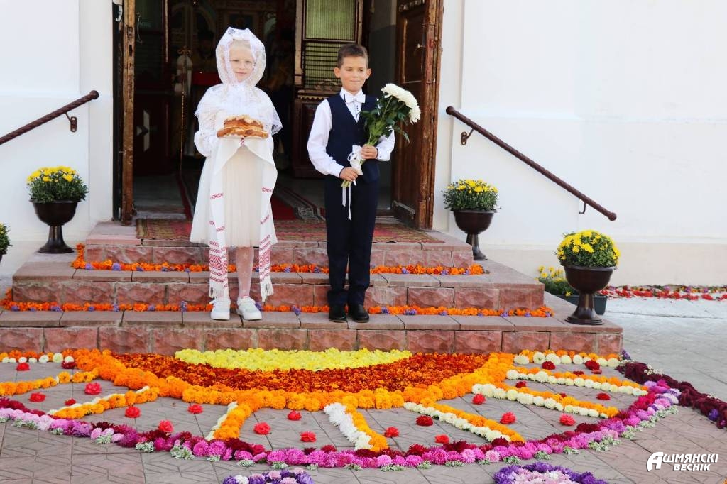 Воскресное утро в храме Воскресения Христова было волнительным и торжественным. Во дворе церкви прихожан встречал красочный цветочный ковер с цифрой 140 – именно такую весомую дату отметила ошмянская святыня этим необычайно теплым и солнечным сентябрьским днем.