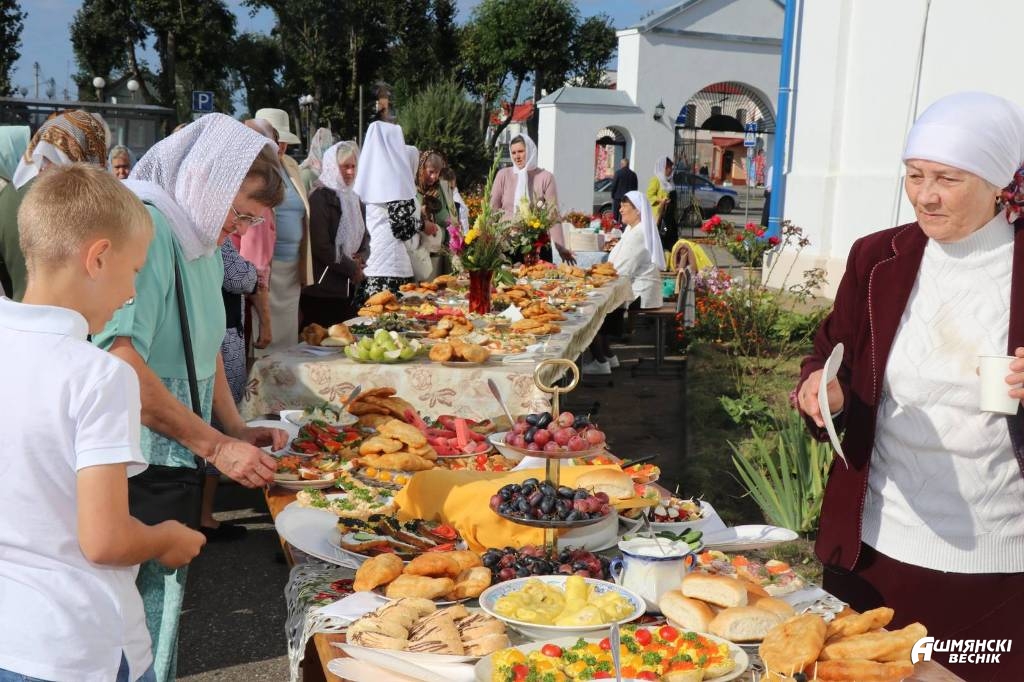 После завершения службы в церковном дворе гостей и прихожан ждало праздничное угощение.