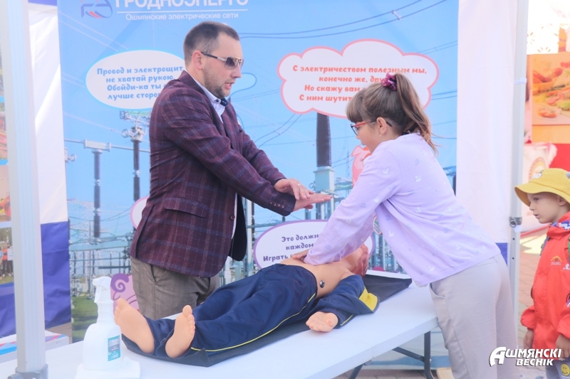 Не остались в стороне от празднования и другие предприятия и организации нашего района. Филиал Ошмянских электрических сетей организовал выставку, повествующую об истории предприятия, а также праздничные фотозоны. Все желающие могли примерить на себя профессиональную амуницию: каски, сапоги, перчатки. Продукция ОАО «Радиотехника» также была широко представлена, а маленькие гости получили первые технические навыки.