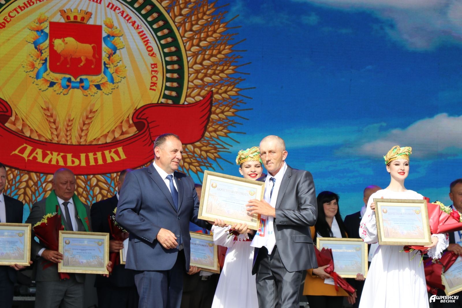 На малую сцену праздника, где также вручали заслуженные награды лучшим сельхозпредприятиям и хлеборобам, поднимались труженики Ошмянского аграрно-экономического колледжа – Почетными грамотами главного управления образования Гродненского облисполкома награждены мастер производственного обучения Кирилл Плавский и слесарь-ремонтник Михаил Янушкевич.
